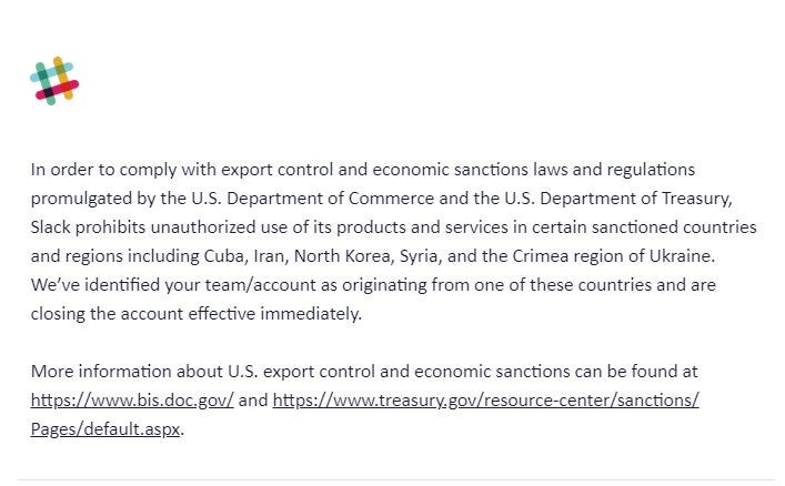 Очевидно, тепер до переліку суб’єктів, від нам яких слід приховувати метадані, треба додати й постачальників послуг, якими ми користуємось. Таких як, наприклад, Slack, що заблокував цілу купу користувачів, які нещодавно побували на підсанкціних територіях.