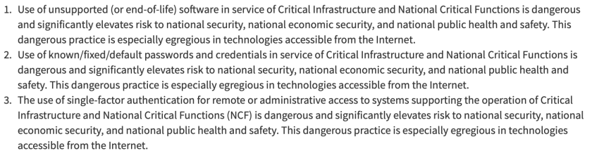 CISA Bad Practices